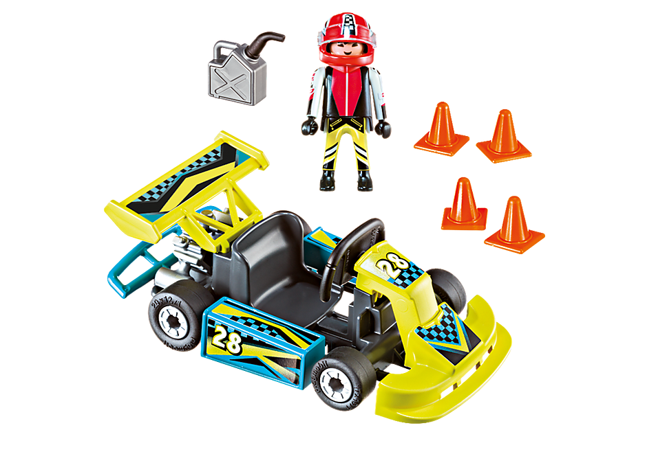 דמויות: 1 רוכב; אביזרים: תיק נשיאה אחד, פחית ג'רי, 4 עמודים, מכונית מירוץ אחת