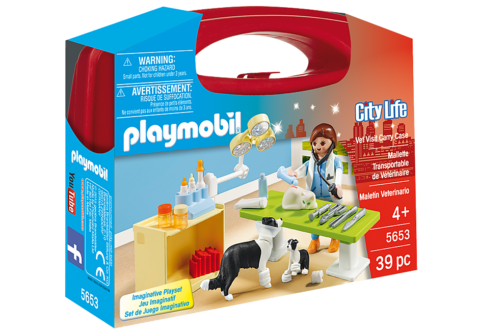 לטפל בכל בעלי החיים באמצעות תיק הנשיאה של ביקור וטרינר. המקרה הקל והקליט הזה כולל את כל מה שהילדים צריכים כדי לטפל בחיות מחמד חולות ולעזור להם לרפא. הסט כולל דמות אחת, שני כלבים, חתול אחד, שולחן בחינה עם מנורה, סטטוסקופ, כלים רפואיים, בקבוקי האכלה, תרופות, תחבושות וטונות של אביזרים אחרים. כשנגמר זמן המשחק, פשוט שמור את החלקים בתוך המארז לפעם הבאה!